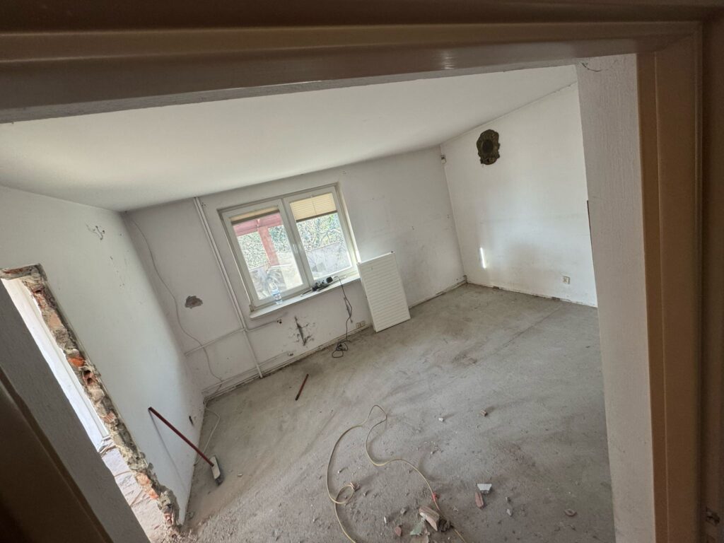 Za nami intensywne prace przy adaptacji wnętrza – stworzyliśmy nowe przejście i wykonaliśmy solidne przygotowanie pod przyszłą podłogę.