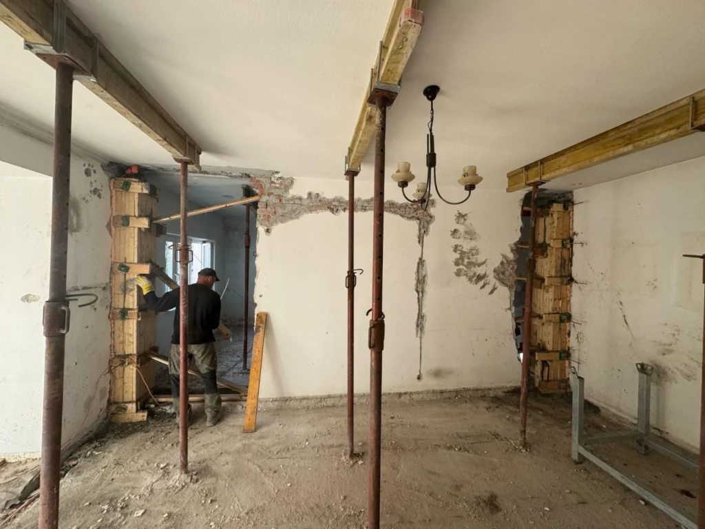 Przeprowadziliśmy kompleksową zmianę układu ścian, w tym ścian nośnych – z pełnym zachowaniem bezpieczeństwa konstrukcji.